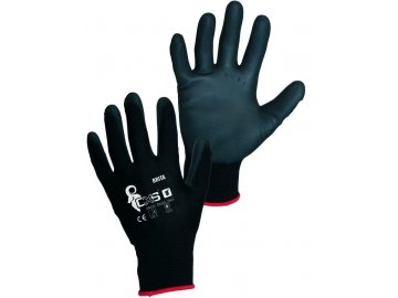 Pletené bezešvé rukavice z polyesteru, s tenkou vrstvou polyuretanu v dlani a na prstech.