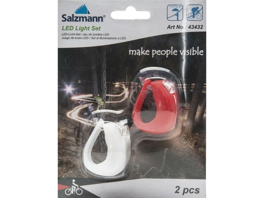 Silikonová světla mají 3 funkce: 2× blikající a trvale svítící. Přední bílé, zadní červené.